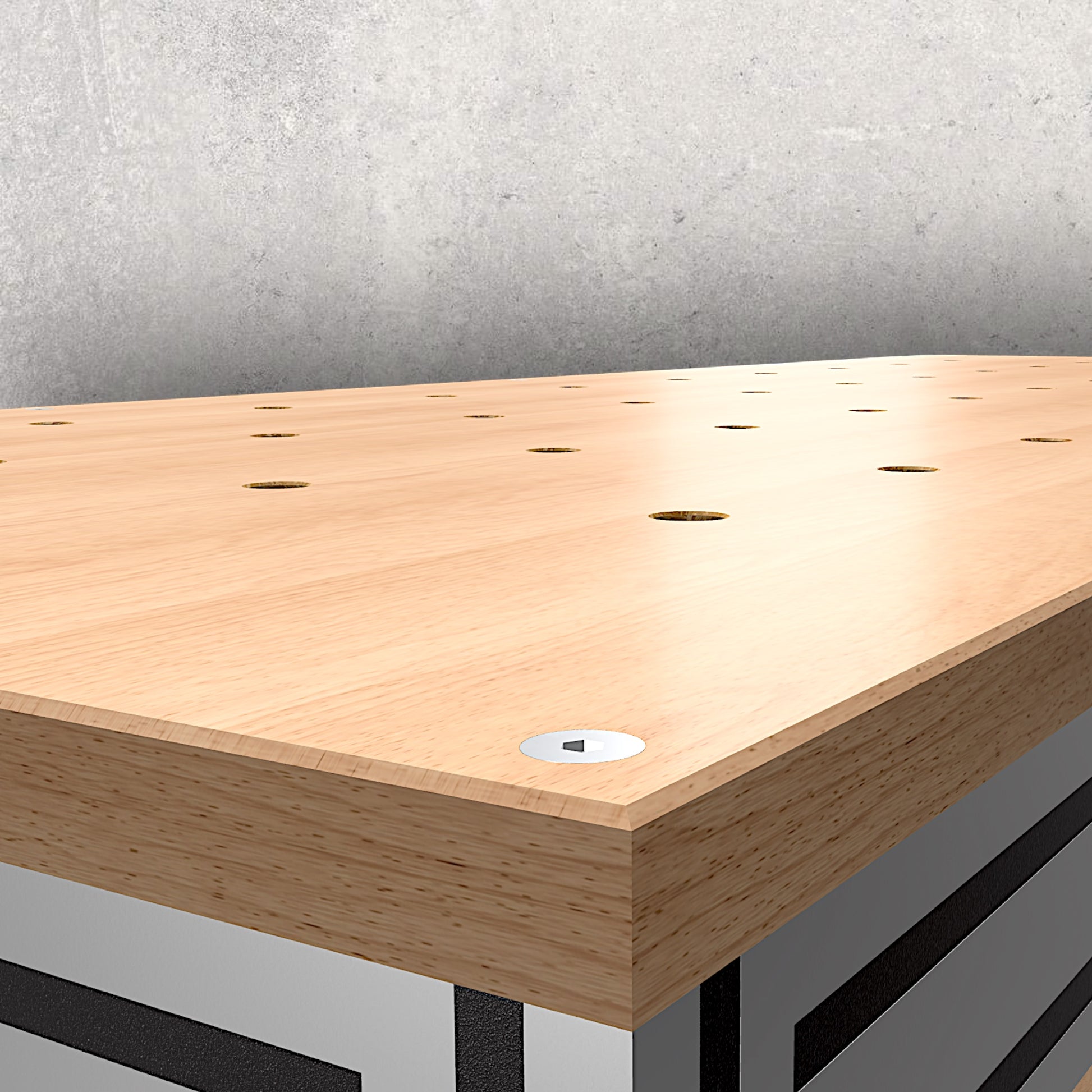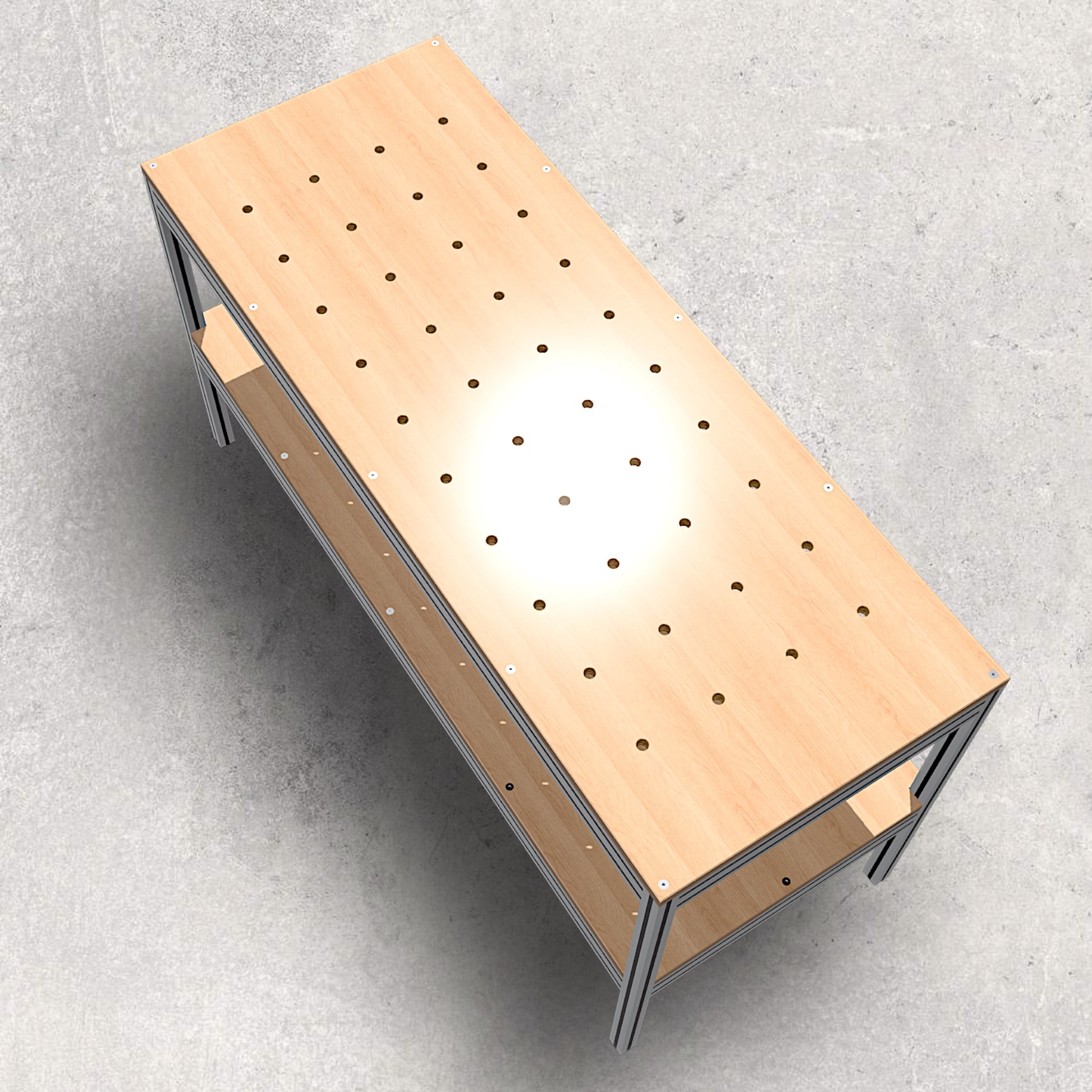 An exceptionally robust MFT style assembly workbench designed to command the center stage in your workshop. Paired with a landing area for your most frequently used tools, this workbench proves to be an indispensable piece of furniture that cannot be overlooked in any workshop. With possibilities for attachments via the dogholes and slots of the aluminum extrusion on all sides, the solutions are truly endless.