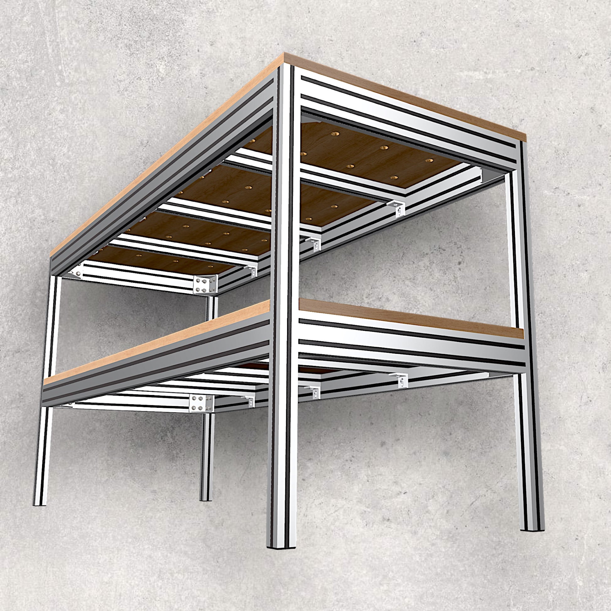 In this download, you will find all the necessary files to build one for yourself, including the Material List, Product Links, 3D Model (STEP & Shapr3D), and Drilling Diagrams. You may stretch, alter, and amend the design to fit your desired dimensions. With this purchase, you will grasp the concept of building with 8020 aluminum extrusion.